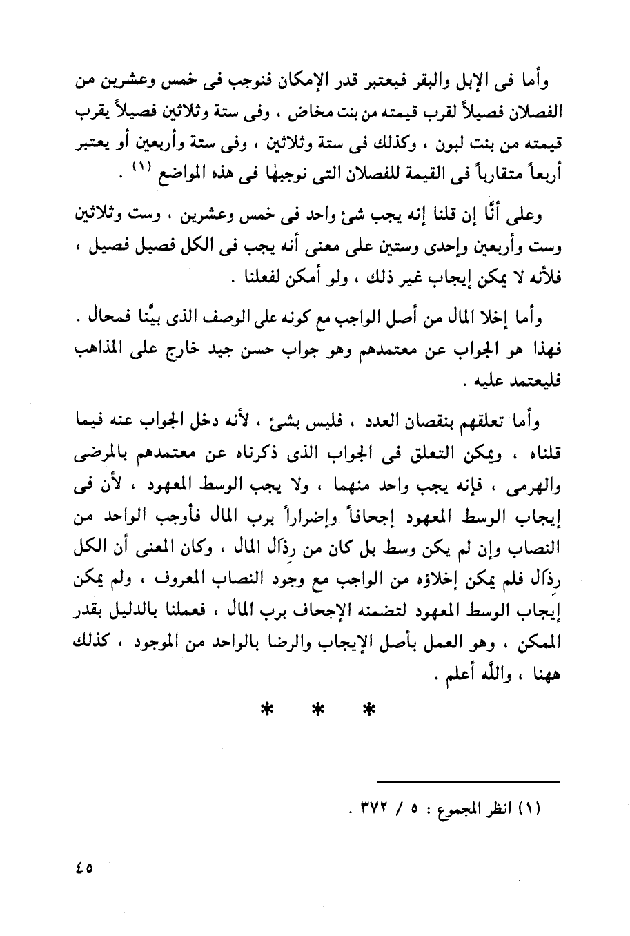 وأما إخلا المال من أصل الواجب مع كونه على الوصف الذي بينا فمحال. فهذا هو الجواب عن معتمدهم وهو جواب حسن جيد خارج على المذاهب فليعتمد عليه.