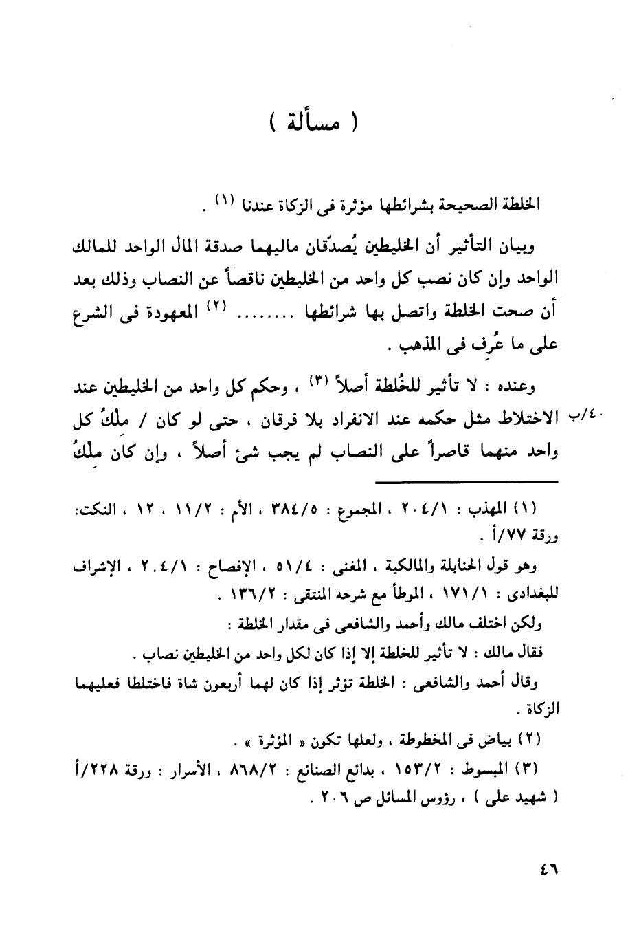 وبيان التأثير أن الخليطين يصدقان ماليهما صدقة المال الواحد للمالك الواحد وإن كان نصب كل واحد من الخليطين ناقصاً عن النصاب وذلك بعد أن صحت الخلطة واتصل بها شرائطها ........ المعهودة في الشرع على ما عرف في المذهب.