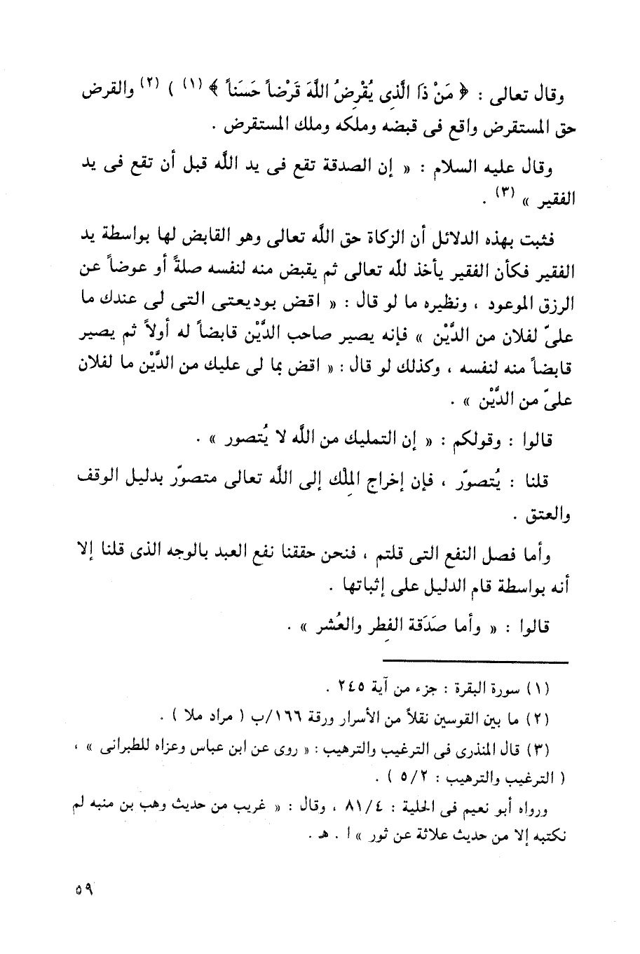وقال تعالى: {مَنْ ذَا الَّذِي يُقْرِضُ اللَّهَ قَرْضًا حَسَنًا} والقرض حق المستقرض واقع في قبضه وملكه وملك المستقرض.