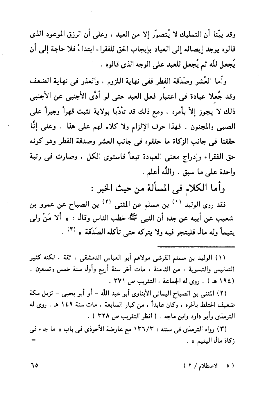 فقد روى الوليد بن مسلم عن المثنى بن الصباح عن عمرو بن شعيب عن أبيه عن جده أن النبي - صلى الله عليه وسلم - خطب الناس وقال: ((ألا من ولى يتيماً وله مال فليتجر فيه ولا يتركه حتى تأكله الصدقة)).