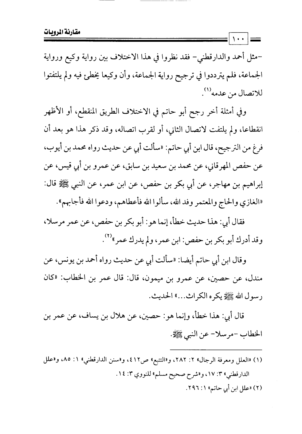 (¬٢) «علل ابن أبي حاتم» ١: ٢٩٦.