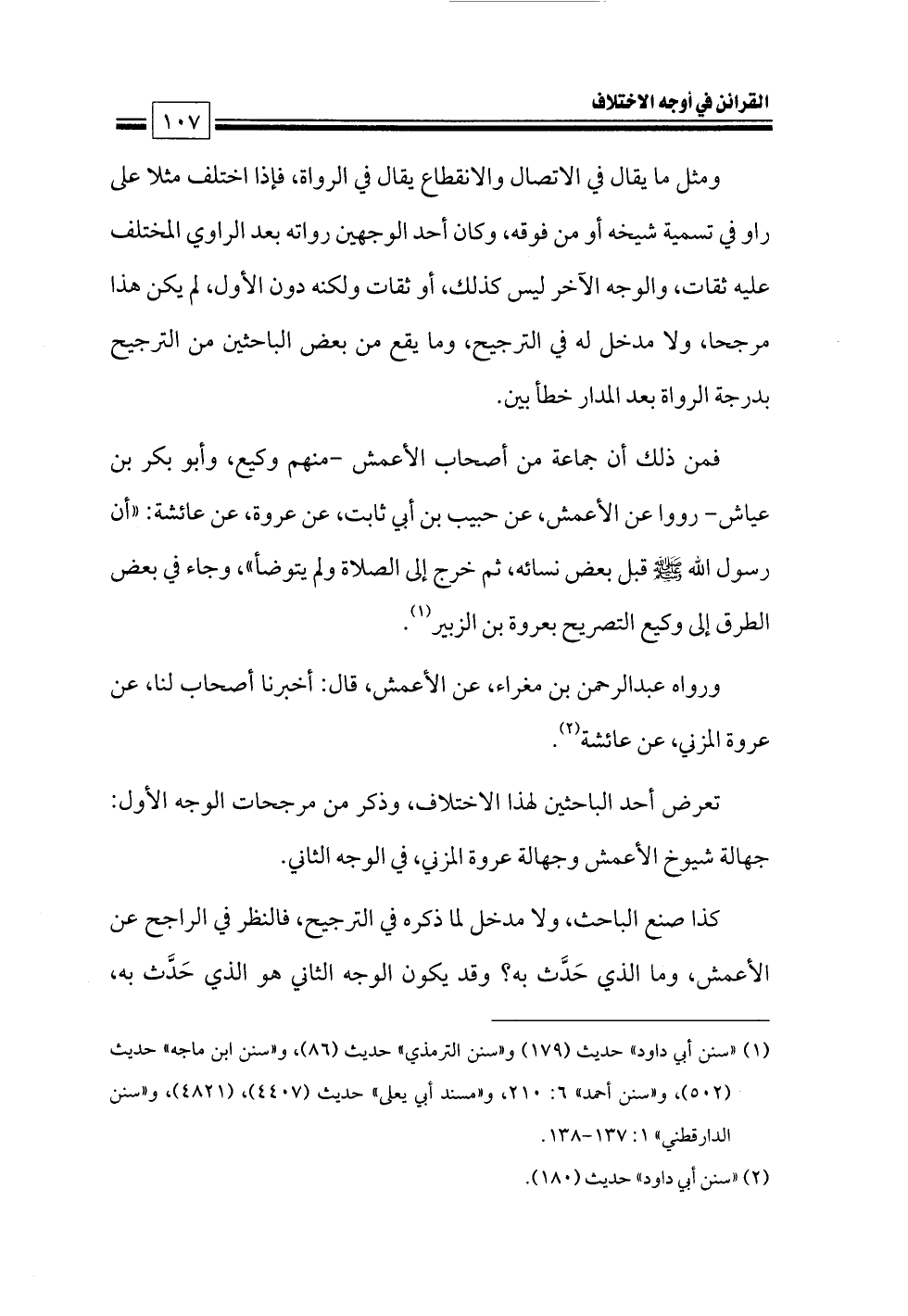 تعرض أحد الباحثين لهذا الاختلاف، وذكر من مرجحات الوجه الأول: جهالة شيوخ الأعمش وجهالة عروة المزني، في الوجه الثاني.