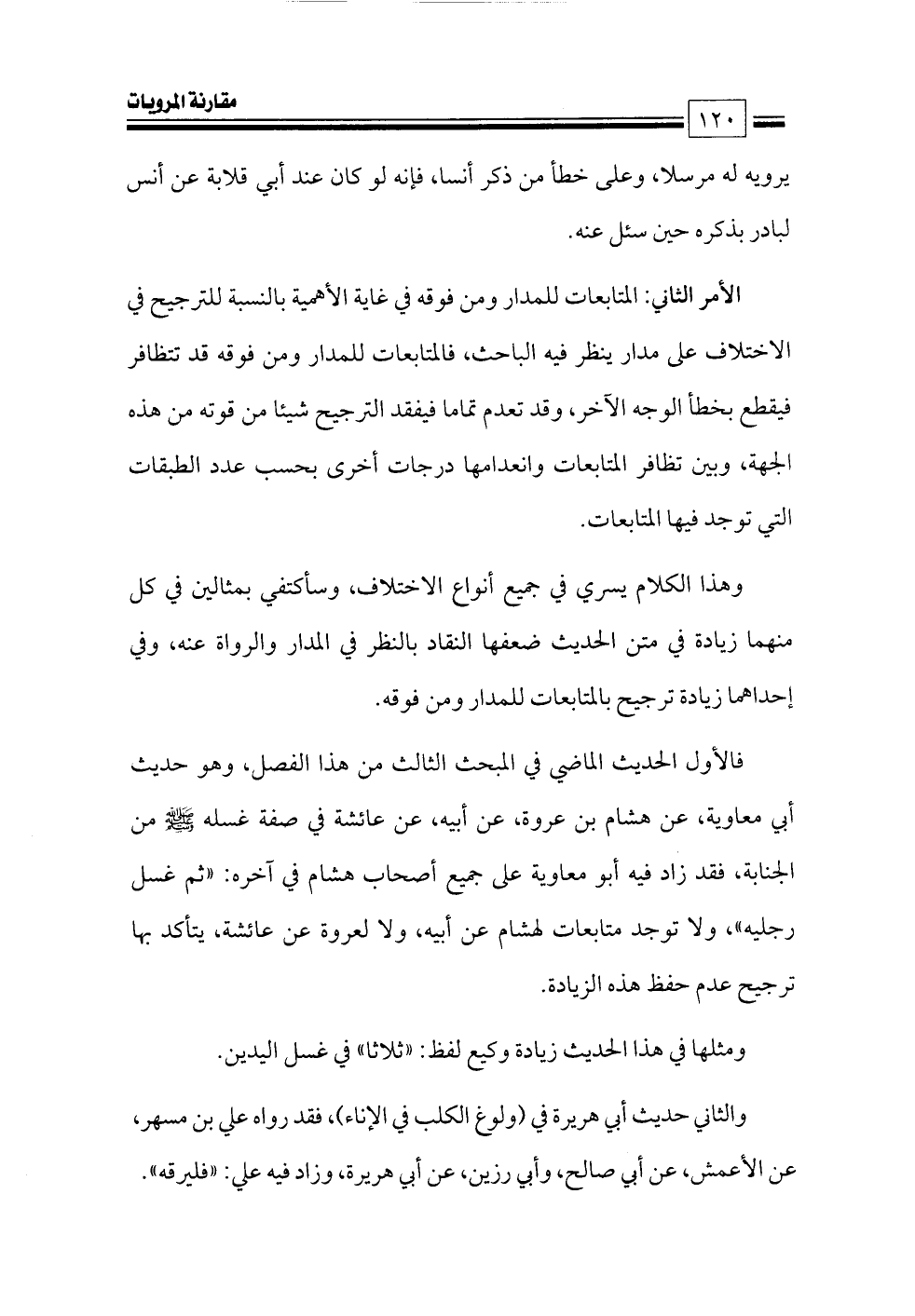 الأمر الثاني: المتابعات للمدار ومن فوقه في غاية الأهمية بالنسبة للترجيح في الاختلاف على مدار ينظر فيه الباحث, فالمتابعات للمدار ومن فوقه قد تتظافر فيقطع بخطأ الوجه الآخر, وقد تعدم تماما فيفقد الترجيح شيئا من قوته من هذه الجهة, وبين تظافر المتابعات وانعدامها درجات أخرى بحسب عدد الطبقات التي توجد فيها المتابعات.