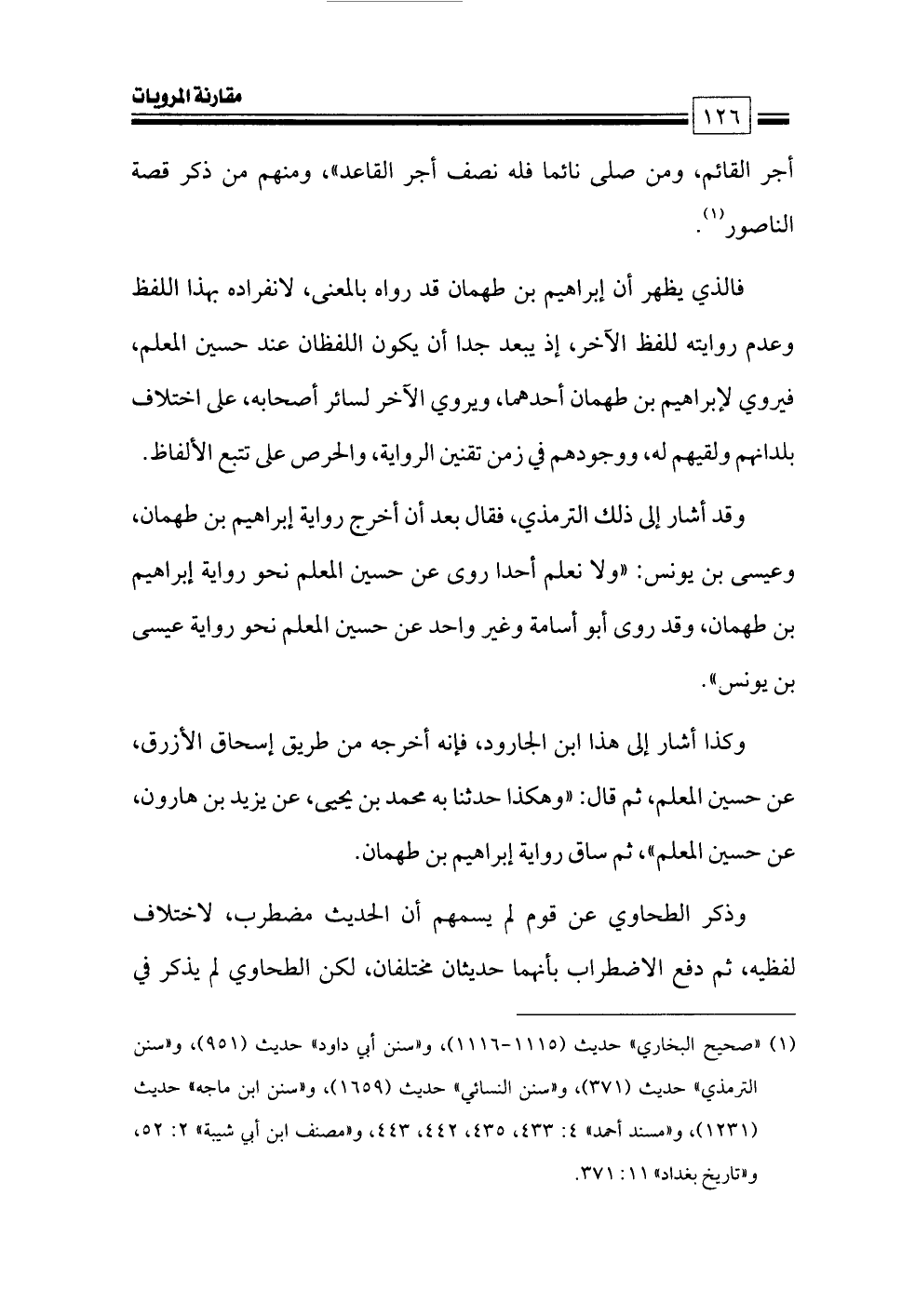 (¬١) «صحيح البخاري» حديث (١١١٥ - ١١١٦) , و «سنن أبي داود» حديث (٩٥١) , و «سنن الترمذي» حديث (٣٧١) , و «سنن النسائي» حديث (١٦٥٩) , و «سنن ابن ماجه» حديث (١٢٣١) , و «مسند أحمد» ٤: ٤٣٣, ٤٣٥, ٤٤٢, ٤٤٣, و «مصنف ابن أبي شيبة» ٢: ٥٢, و «تاريخ بغداد» ١١: ٣٧١.