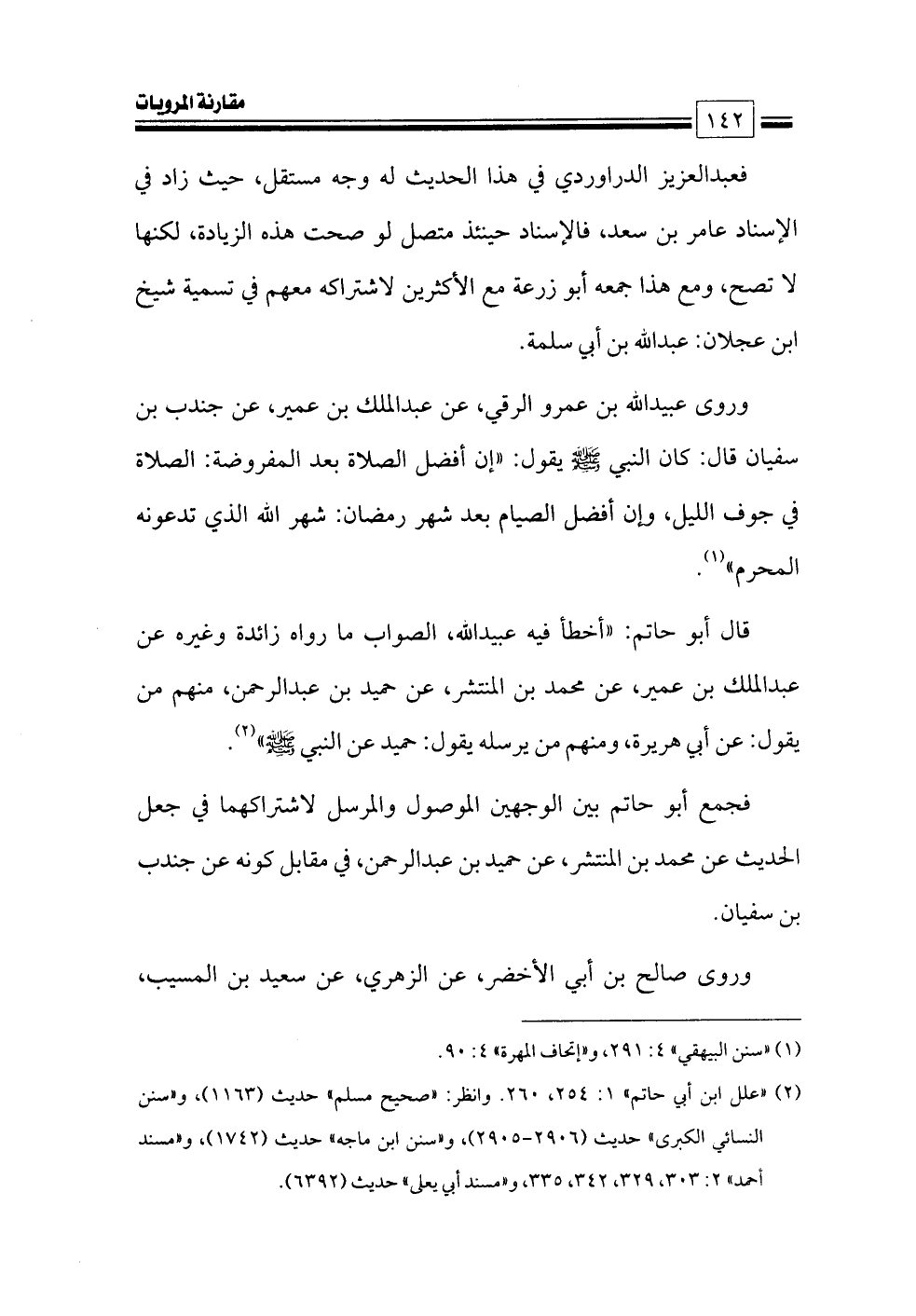 (¬٢) «علل ابن أبي حاتم» ١: ٢٥٤، ٢٦٠. وانظر: «صحيح مسلم» حديث (١١٦٣)، و «سنن النسائي الكبرى» حديث (٢٩٠٦ - ٢٩٠٥)، و «سنن ابن ماجه» حديث (١٧٤٢)، و «مسند أحمد» ٢: ٣٠٣، ٣٢٩، ٣٤٢، ٣٣٥، و «مسند أبي يعلى» حديث (٦٣٩٢).