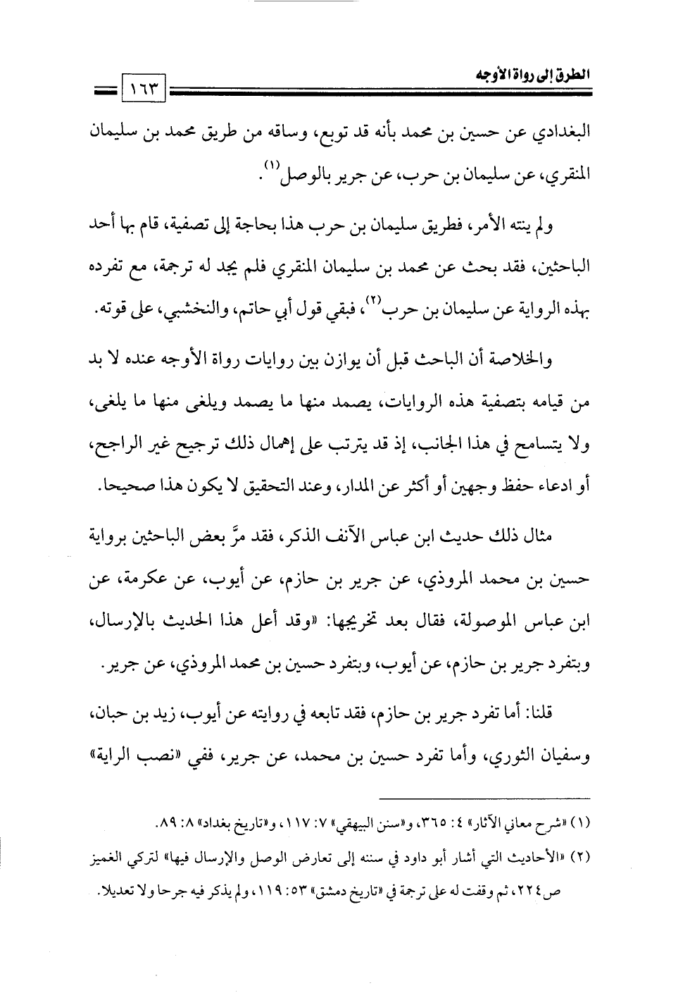 البغدادي عن حسين بن محمد بأنه قد توبع، وساقه من طريق محمد بن سليمان المنقري، عن سليمان بن حرب، عن جرير بالوصل (¬١).