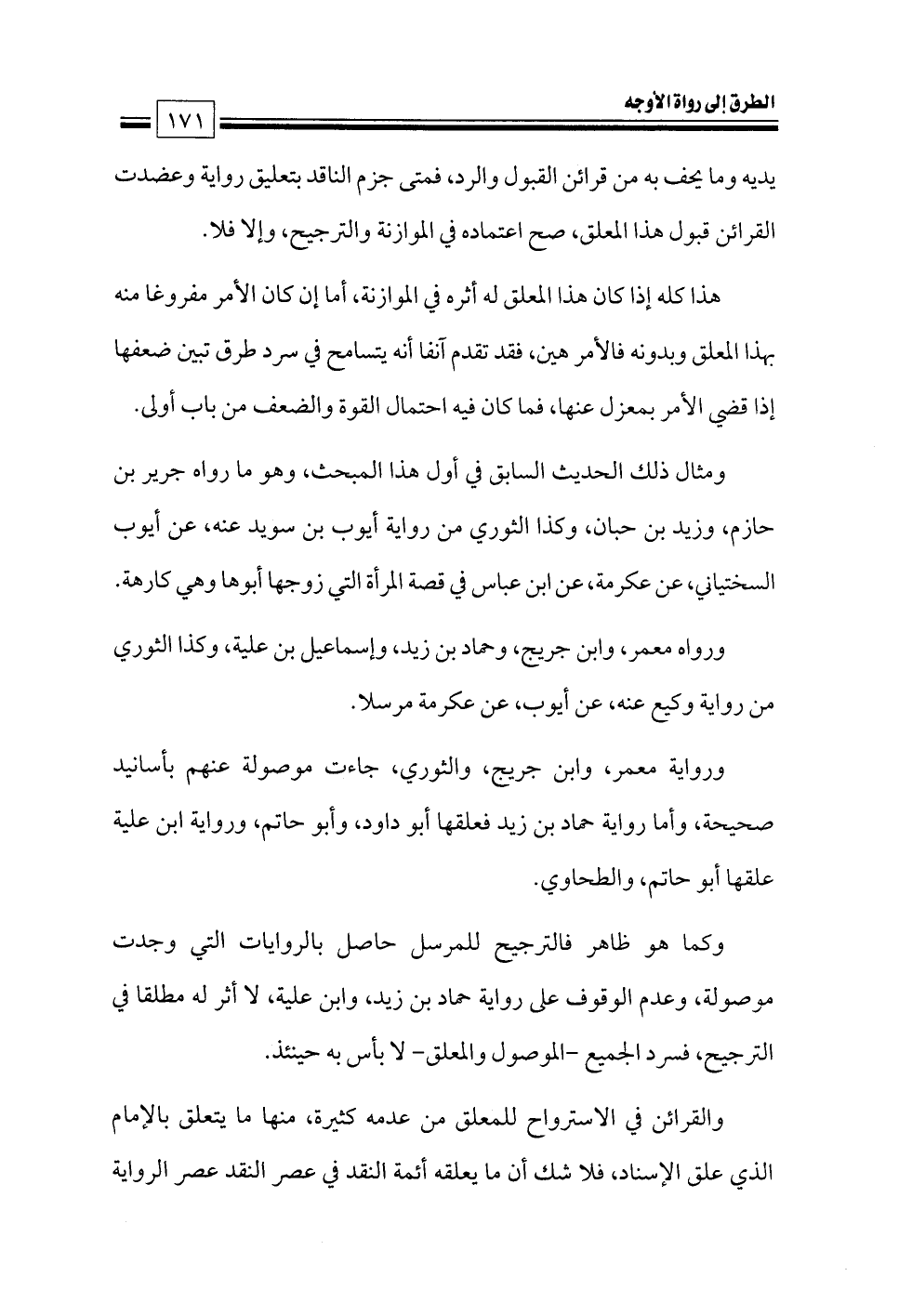 وكما هو ظاهر فالترجيح للمرسل حاصل بالروايات التي وجدت موصولة، وعدم الوقوف على رواية حماد بن زيد، وابن علية، لا أثر له مطلقا في الترجيح، فسرد الجميع -الموصول والمعلق- لا بأس به حينئذ.