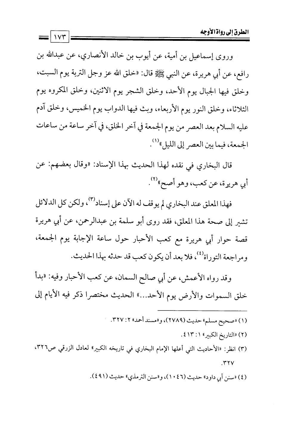 (¬٣) انظر: «الأحاديث التي أعلها الإمام البخاري في تاريخه الكبير» لعادل الزرقي ص ٣٢٦، ٣٢٧.