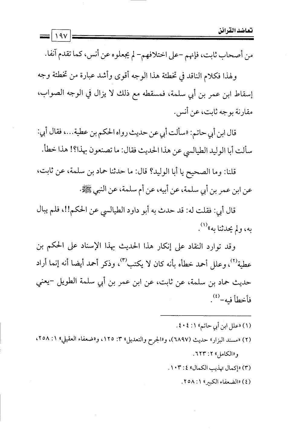 (¬١) «علل ابن أبي حاتم» ١: ٤٠٤.