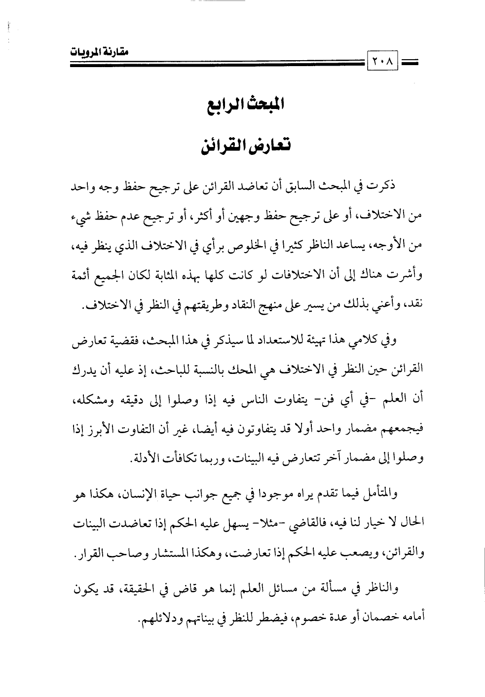وفي كلامي هذا تهيئة للاستعداد لما سيذكر في هذا المبحث، فقضية تعارض القرائن حين النظر في الاختلاف هي المحك بالنسبة للباحث، إذ عليه أن يدرك أن العلم -في أي فن- يتفاوت الناس فيه إذا وصلوا إلى دقيقه ومشكله، فيجمعهم مضمار واحد أولا قد يتفاوتون فيه أيضا، غير أن التفاوت الأبرز إذا وصلوا إلى مضمار آخر تتعارض فيه البينات، وربما تكافأت الأدلة.