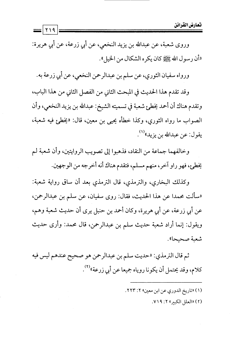 (¬١) «تاريخ الدوري عن ابن معين» ٢: ٢٢٣.