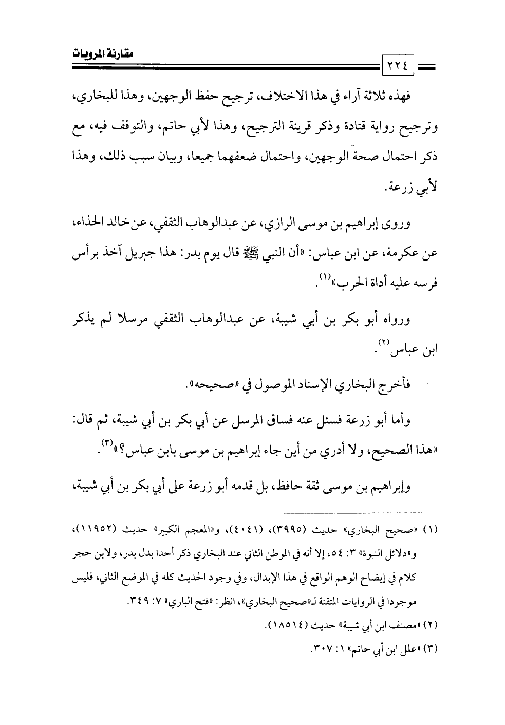 وروى إبراهيم بن موسى الرازي، عن عبدالوهاب الثقفي، عن خالد الحذاء، عن عكرمة، عن ابن عباس: «أن النبي - صلى الله عليه وسلم - قال يوم بدر: هذا جبريل آخذ برأس فرسه عليه أداة الحرب» (¬١).
