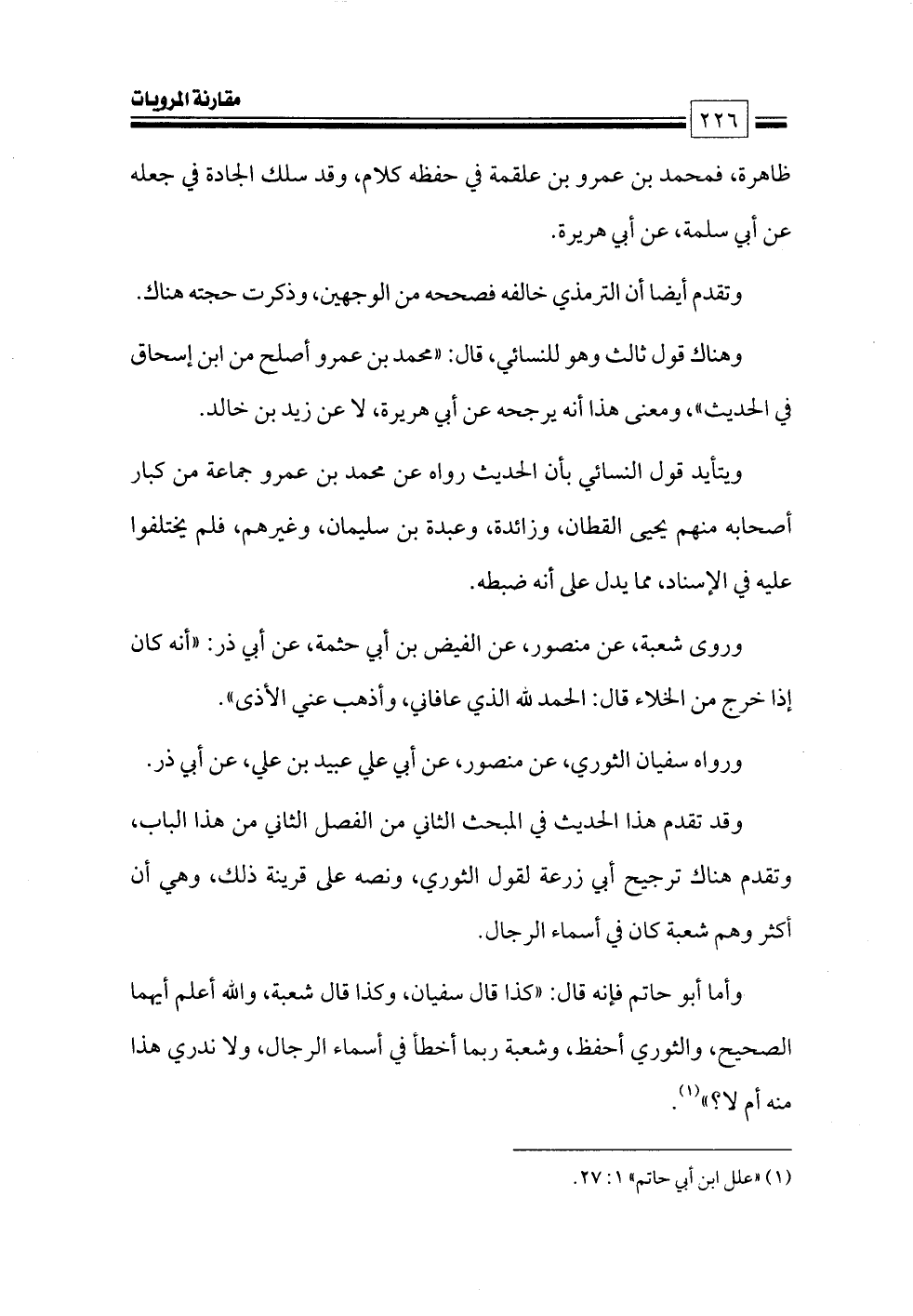(¬١) «علل ابن أبي حاتم» ١: ٢٧.
