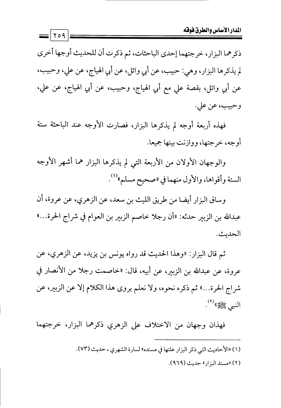 ثم قال البزار: «وهذا الحديث قد رواه يونس بن يزيد، عن الزهري، عن عروة، عن عبدالله بن الزبير، عن أبيه، قال: «خاصمت رجلا من الأنصار في شراج الحرة ... » ثم ذكره نحوه، ولا نعلم يروى هذا الكلام إلا عن الزبير، عن النبي - صلى الله عليه وسلم -» (¬٢).