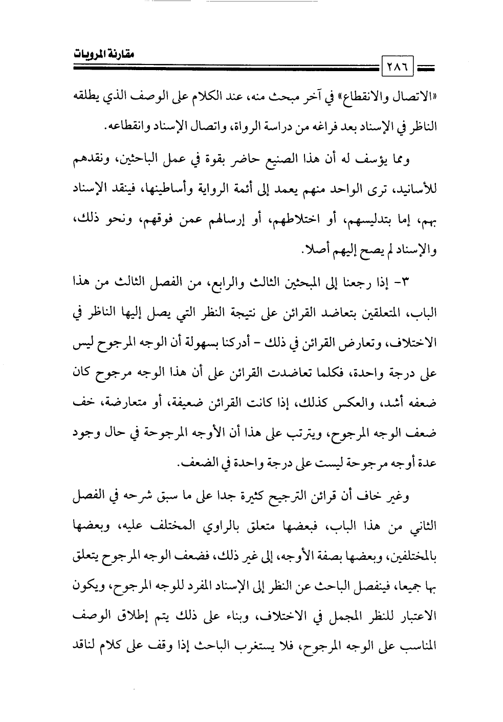 «الاتصال والانقطاع» في آخر مبحث منه، عند الكلام على الوصف الذي يطلقه الناظر في الإسناد بعد فراغه من دراسة الرواة، واتصال الإسناد وانقطاعه.