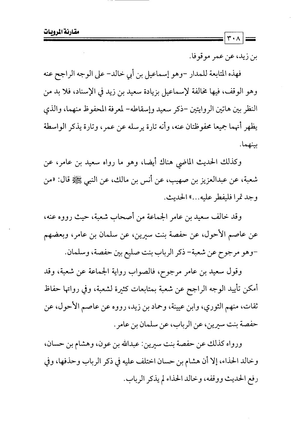 وقول سعيد بن عامر مرجوح، فالصواب رواية الجماعة عن شعبة، وقد أمكن تأييد الوجه الراجح عن شعبة بمتابعات كثيرة لشعبة, وفي رواتها حفاظ ثقات، منهم الثوري، وابن عيينة، وحماد بن زيد، رووه عن عاصم الأحول، عن حفصة بنت سيرين، عن الرباب، عن سلمان بن عامر.