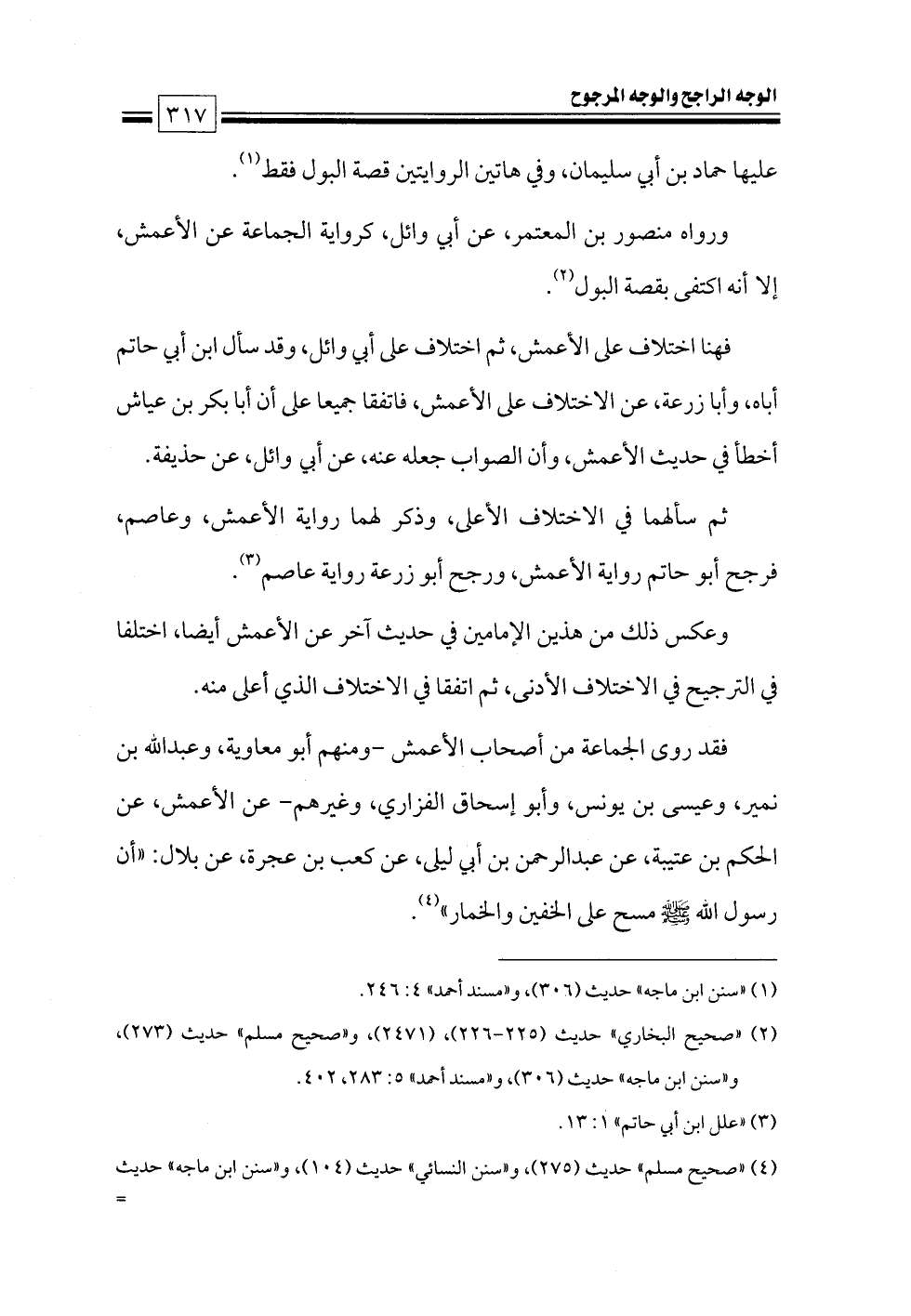وعكس ذلك من هذين الإمامين في حديث آخر عن الأعمش أيضا، اختلفا في الترجيح في الاختلاف الأدنى، ثم اتفقا في الاختلاف الذي أعلى منه.