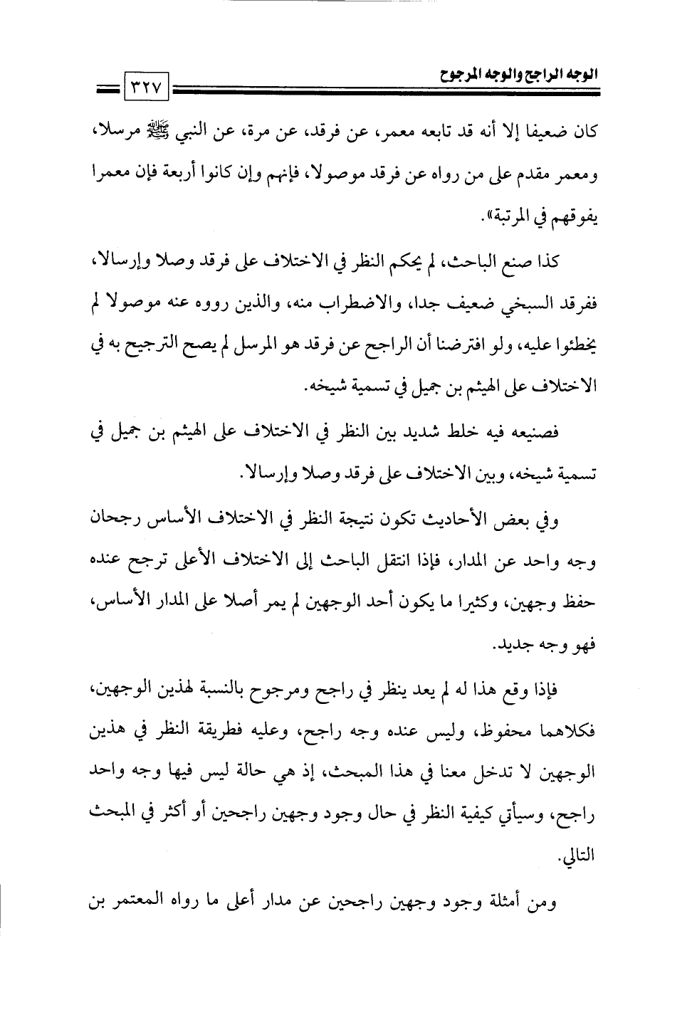 ومن أمثلة وجود وجهين راجحين عن مدار أعلى ما رواه المعتمر بن