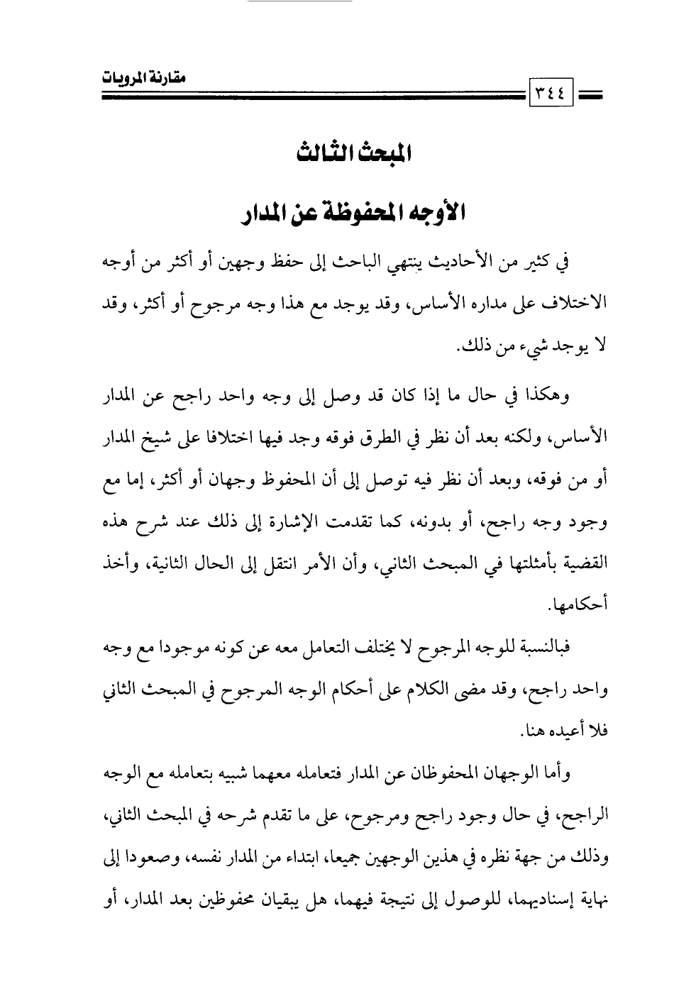 وهكذا في حال ما إذا كان قد وصل إلى وجه واحد راجح عن المدار الأساس, ولكنه بعد أن نظر في الطرق فوقه وجد فيها اختلافا على شيخ المدار أو من فوقه، وبعد أن نظر فيه توصل إلى أن المحفوظ وجهان أو أكثر، إما مع وجود وجه راجح، أو بدونه، كما تقدمت الإشارة إلى ذلك عند شرح هذه القضية بأمثلتها في المبحث الثاني، وأن الأمر انتقل إلى الحال الثانية، وأخذ أحكامها.