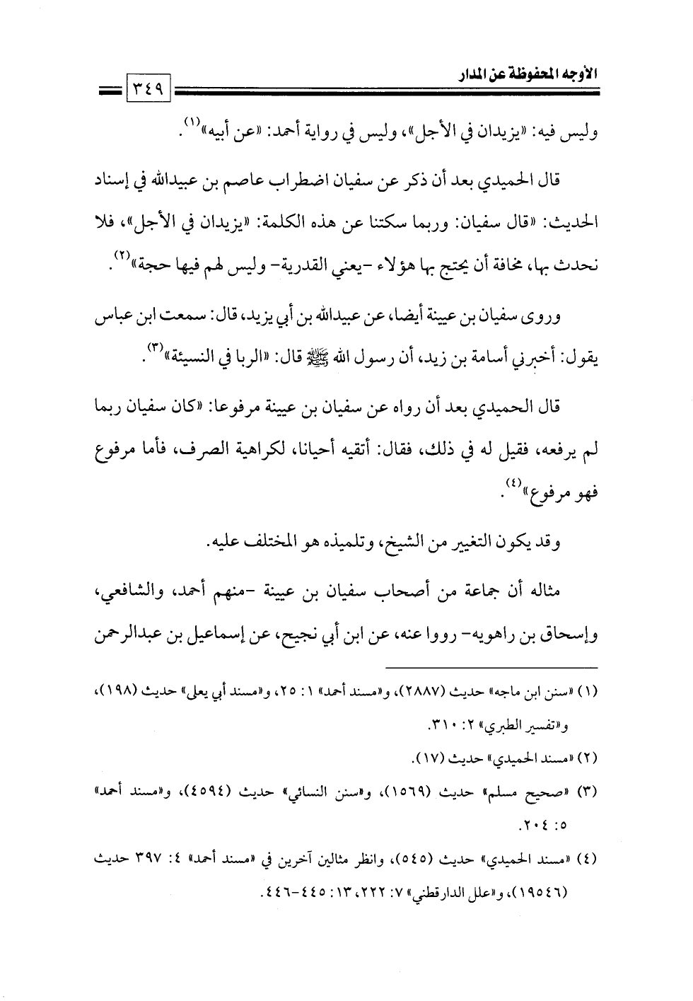 قال الحميدي بعد أن رواه عن سفيان بن عيينة مرفوعا: «كان سفيان ربما لم يرفعه، فقيل له في ذلك، فقال: أتقيه أحيانا، لكراهية الصرف، فأما مرفوع فهو مرفوع» (¬٤).