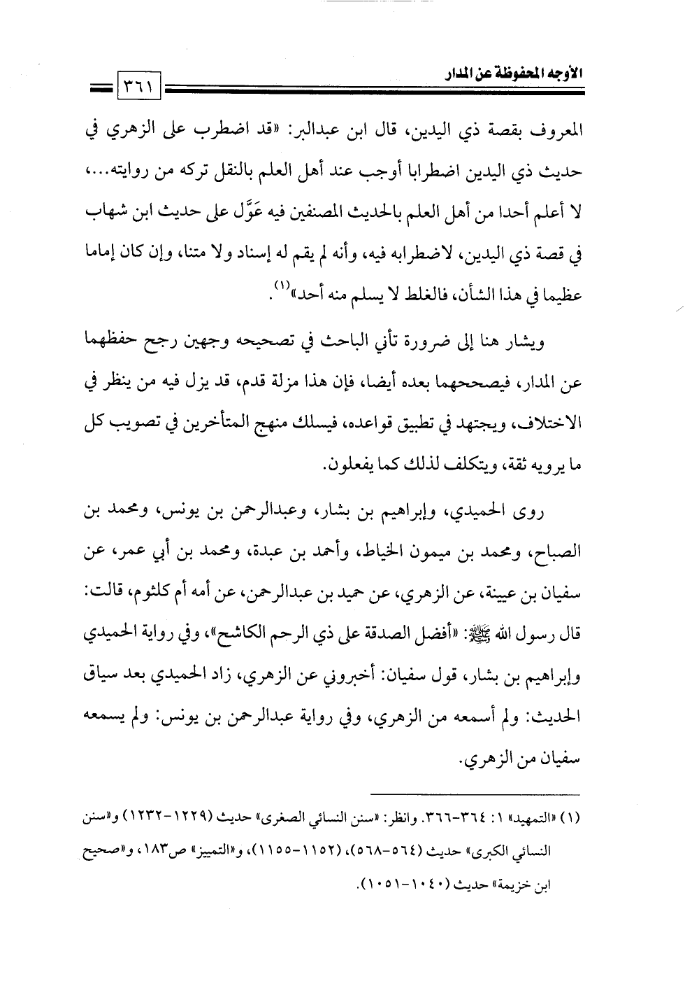 (¬١) «التمهيد» ١: ٣٦٤ - ٣٦٦. وانظر: «سنن النسائي الصغرى» حديث (١٢٢٩ - ١٢٣٢) و «سنن النسائي الكبرى» حديث (٥٦٤ - ٥٦٨)، (١١٥٢ - ١١٥٥) , و «التمييز» ص ١٨٣, و «صحيح ابن خزيمة» حديث (١٠٤٠ - ١٠٥١).