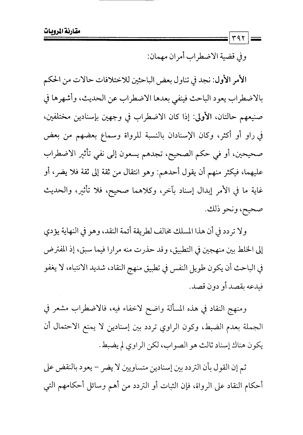 ومنهج النقاد في هذه المسألة واضح لاخفاء فيه، فالاضطراب مشعر في الجملة بعدم الضبط، وكون الراوي تردد بين إسنادين لا يمنع الاحتمال أن يكون هناك إسناد ثالث هو الصواب, لكن الراوي لم يضبط.