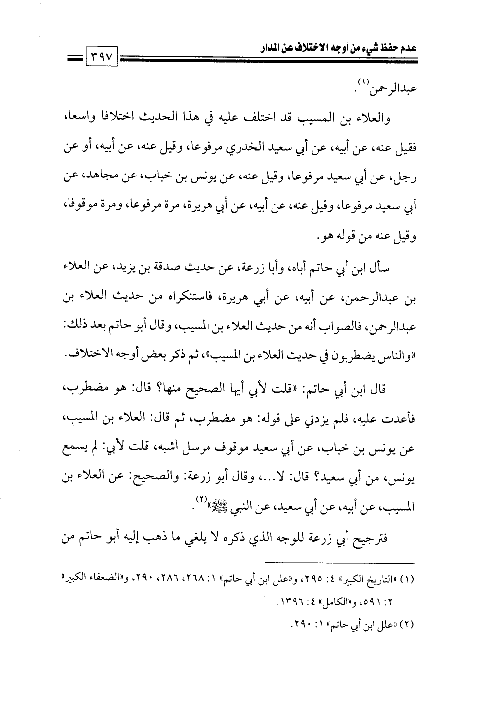 (¬٢) «علل ابن أبي حاتم» ١: ٢٩٠.