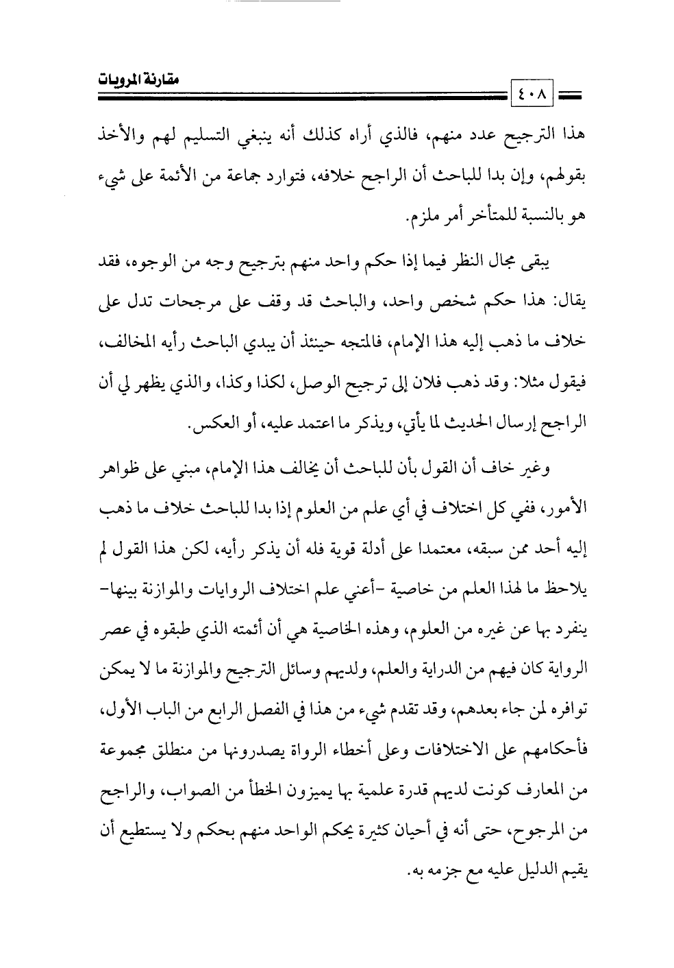 وغير خاف أن القول بأن للباحث أن يخالف هذا الإمام، مبني على ظواهر الأمور، ففي كل اختلاف في أي علم من العلوم إذا بدا للباحث خلاف ما ذهب إليه أحد ممن سبقه، معتمدا على أدلة قوية فله أن يذكر رأيه، لكن هذا القول لم يلاحظ ما لهذا العلم من خاصية -أعني علم اختلاف الروايات والموازنة بينها- ينفرد بها عن غيره من العلوم، وهذه الخاصية هي أن أئمته الذي طبقوه في عصر الرواية كان فيهم من الدراية والعلم، ولديهم وسائل الترجيح والموازنة ما لا يمكن توافره لمن جاء بعدهم، وقد تقدم شيء من هذا في الفصل الرابع من الباب الأول، فأحكامهم على الاختلافات وعلى أخطاء الرواة يصدرونها من منطلق مجموعة من المعارف كونت لديهم قدرة علمية بها يميزون الخطأ من الصواب، والراجح من المرجوح، حتى أنه في أحيان كثيرة يحكم الواحد منهم بحكم ولا يستطيع أن يقيم الدليل عليه مع جزمه به.