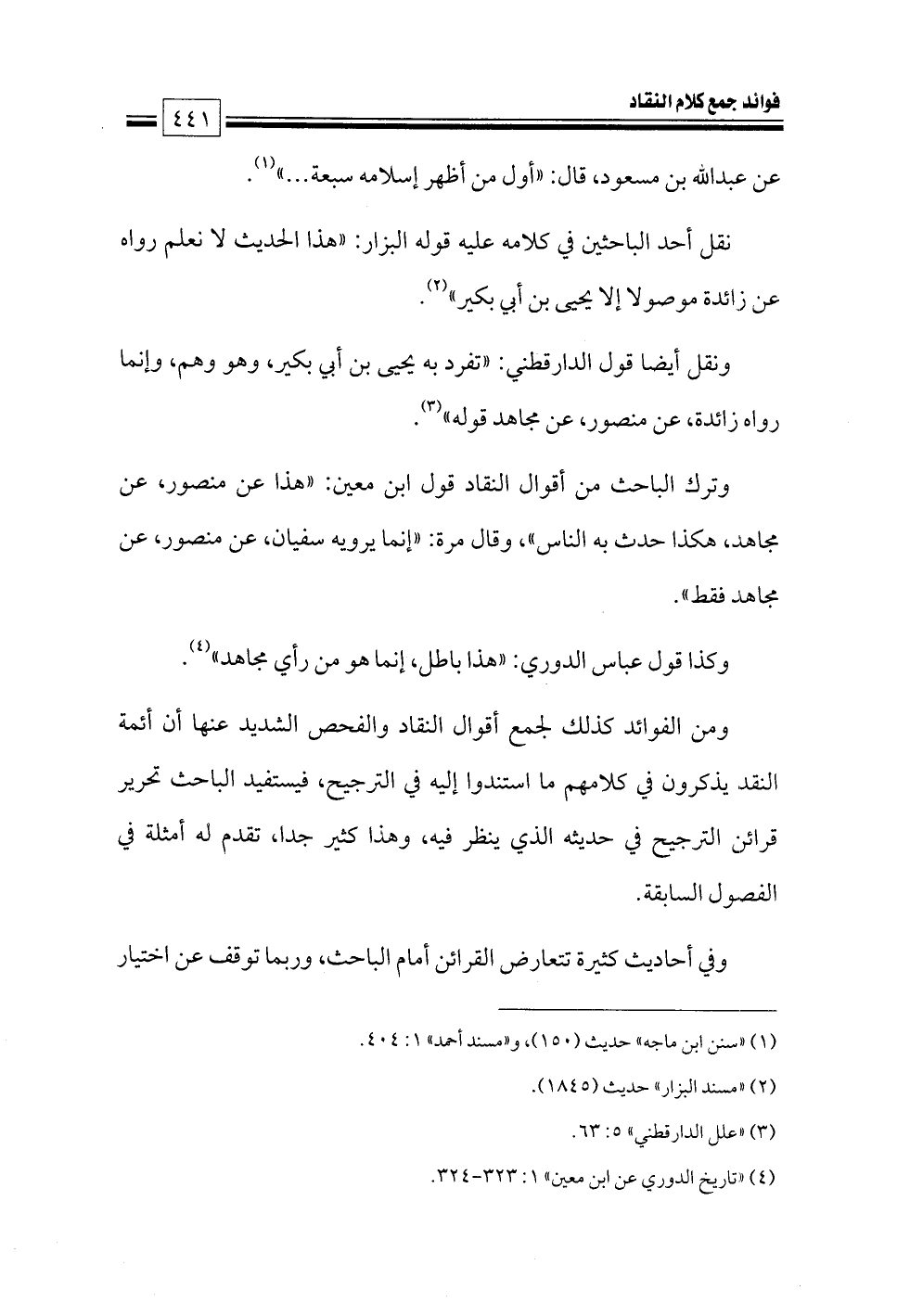 (¬٤) «تاريخ الدوري عن ابن معين» ١: ٣٢٣ - ٣٢٤.