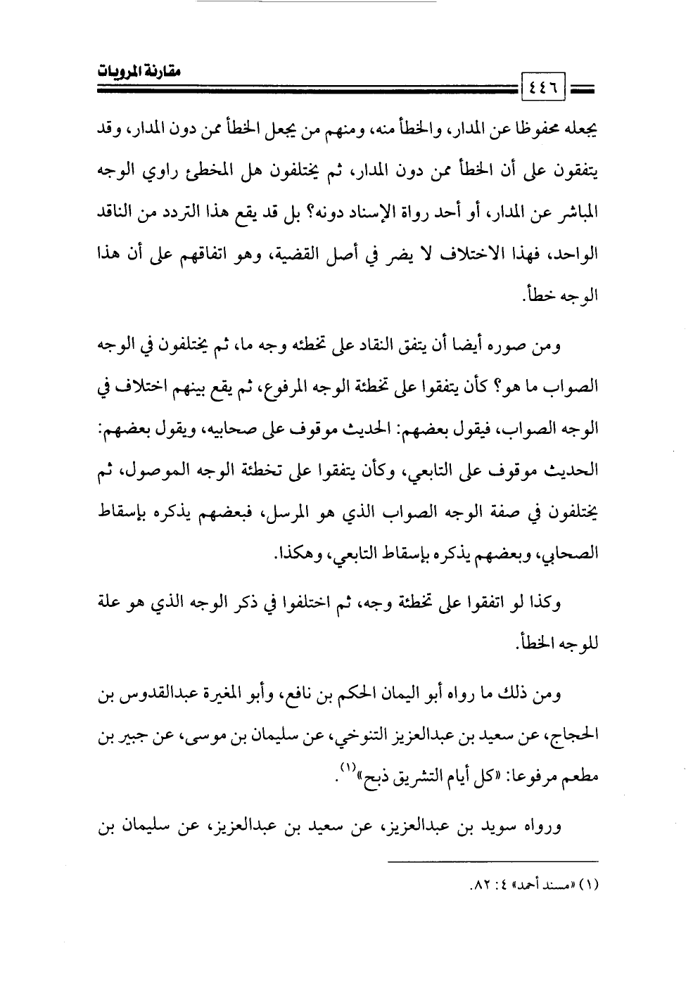 ومن ذلك ما رواه أبو اليمان الحكم بن نافع، وأبو المغيرة عبدالقدوس بن الحجاج، عن سعيد بن عبدالعزيز التنوخي، عن سليمان بن موسى، عن جبير بن مطعم مرفوعا: «كل أيام التشريق ذبح» (¬١).