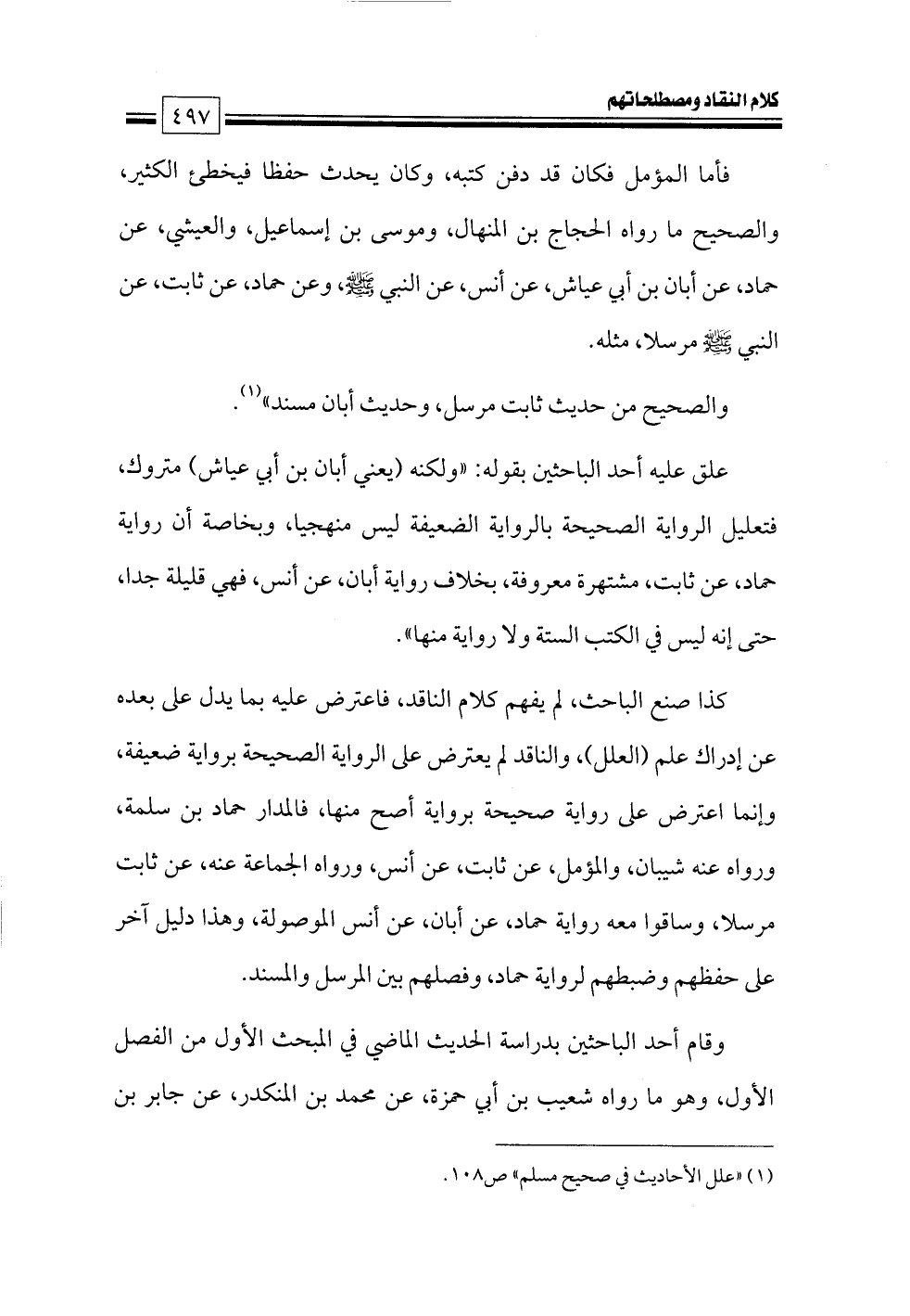 (¬١) «علل الأحاديث في صحيح مسلم» ص ١٠٨.