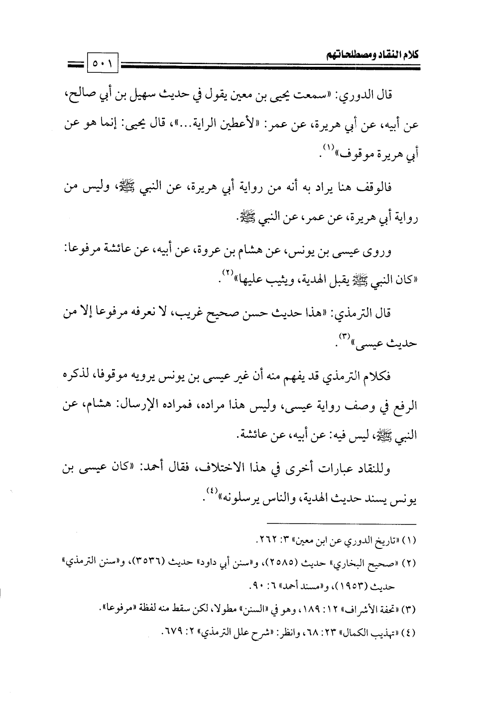 وللنقاد عبارات أخرى في هذا الاختلاف، فقال أحمد: «كان عيسى بن يونس يسند حديث الهدية، والناس يرسلونه» (¬٤).