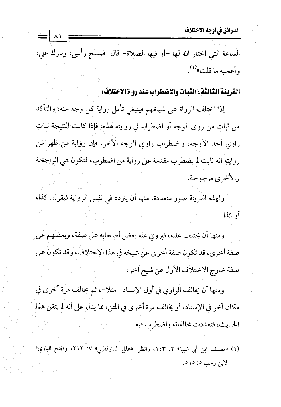القرينة الثالثة: الثبات والاضطراب عند رواة الاختلاف: