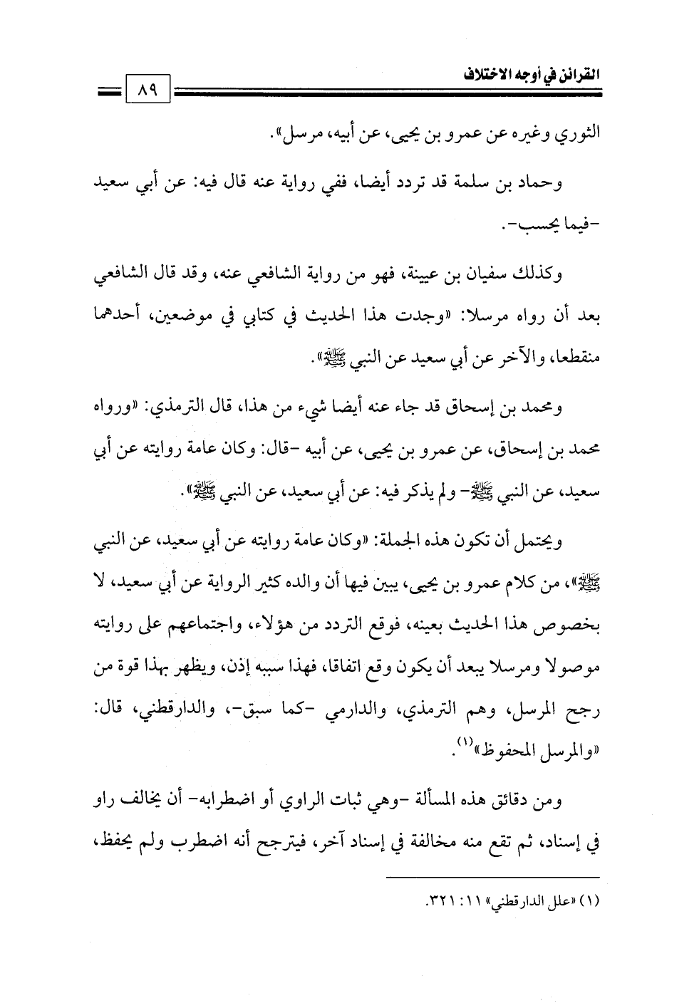 (¬١) «علل الدارقطني» ١١: ٣٢١.