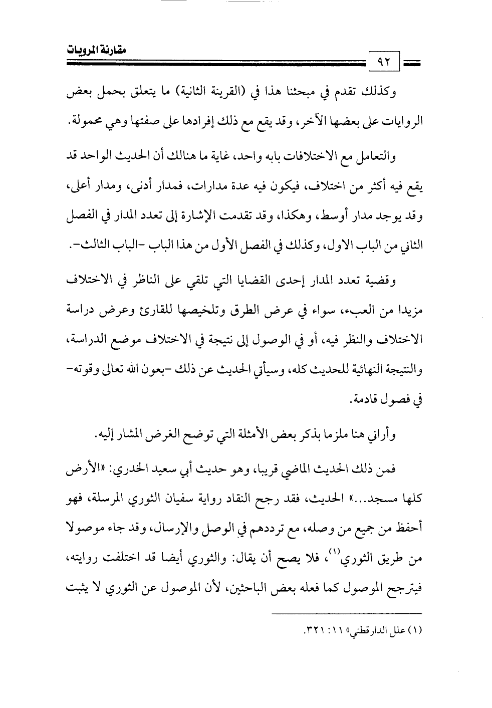 وقضية تعدد المدار إحدى القضايا التي تلقي على الناظر في الاختلاف مزيدا من العبء، سواء في عرض الطرق وتلخيصها للقارئ وعرض دراسة الاختلاف والنظر فيه، أو في الوصول إلى نتيجة في الاختلاف موضع الدراسة, والنتيجة النهائية للحديث كله, وسيأتي الحديث عن ذلك -بعون الله تعالى وقوته- في فصول قادمة.