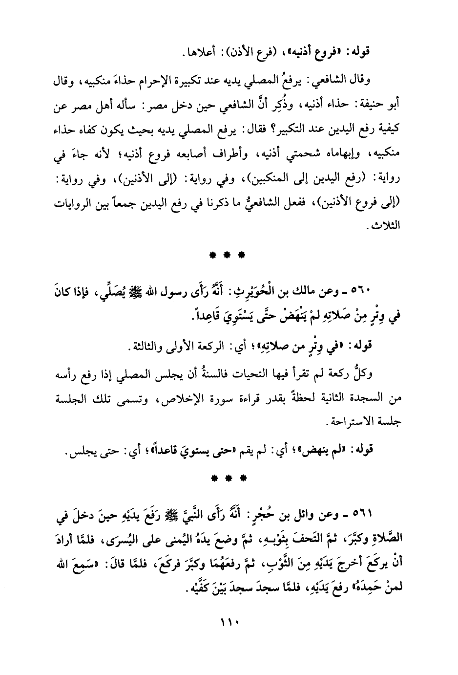 560 - وعن مالك بن الْحُوَيْرِثِ: أَنَّهُ رَأَى رسول الله - صلى الله عليه وسلم - يُصَلِّي، فإذا كانَ في وِتْرٍ مِنْ صَلاتِهِ لمْ يَنْهَضْ حتَّى يَسْتَوِيَ قَاعِدًا.