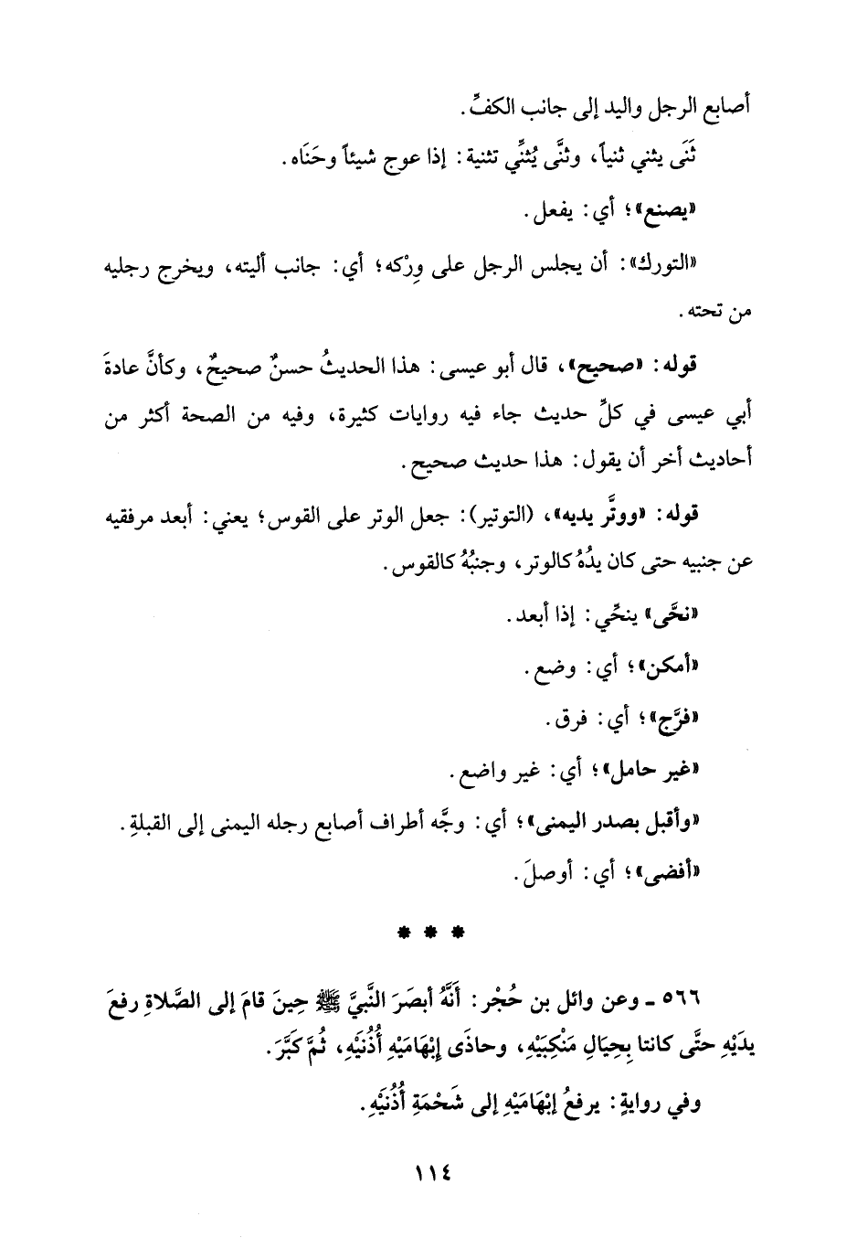 566 - وعن وائل بن حُجْر: أَنَّهُ أبصَرَ النَّبيَّ - صلى الله عليه وسلم - حِينَ قامَ إلى الصَّلاةِ رفعَ يدَيْهِ حتَّى كانتا بِحِيَالِ مَنْكِبَيْهِ، وحاذَى إبْهَامَيْهِ أُذُنَيْهِ، ثُمَّ كَبَّرَ.