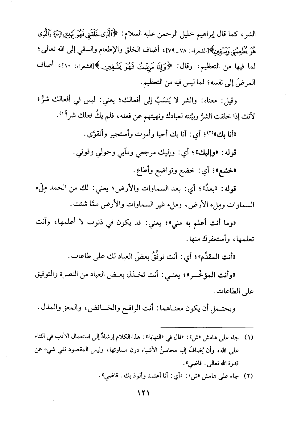 (¬2) جاء على هامش "ش": "أي: أنا أعتمد وألوذ بك. قاضي".