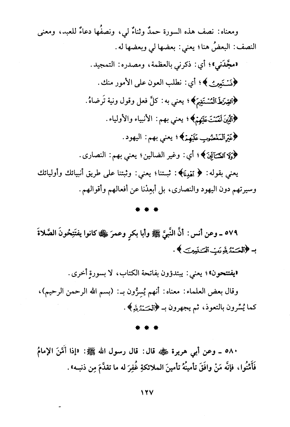 579 - وعن أنس: أنَّ النَّبيَّ - صلى الله عليه وسلم - وأبا بكرٍ وعمرَ - رضي الله عنهما - كانوا يفتَتِحُونَ الصَّلاةَ بـ {الْحَمْدُ لِلَّهِ رَبِّ الْعَالَمِينَ}.