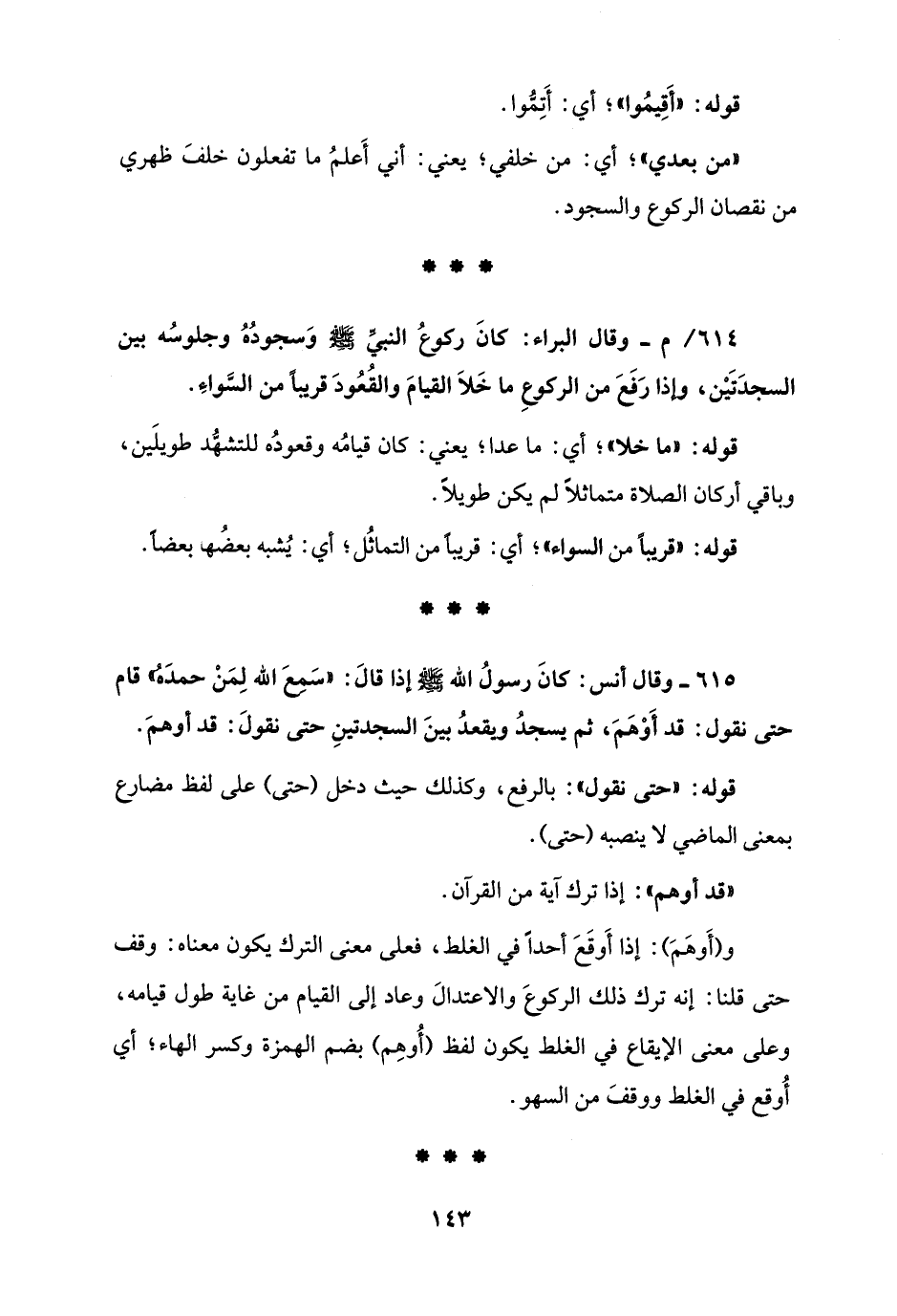 615 - وقال أنس: كانَ رسولُ الله - صلى الله عليه وسلم - إذا قالَ: "سَمِعَ الله لِمَنْ حمدَهُ" قام حتى نقول: قد أَوْهَمَ, ثم يسجدُ ويقعدُ بينَ السجدتينِ حتى نقولَ: قد أوهمَ.