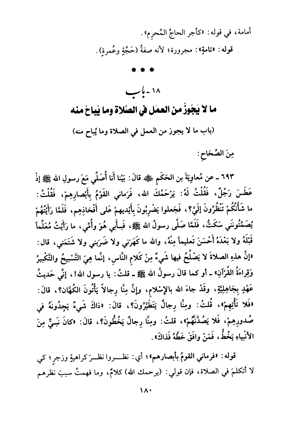 18 - باب ما لا يَجُوزُ من العمَل في الصَّلاة وما يُباحُ منه