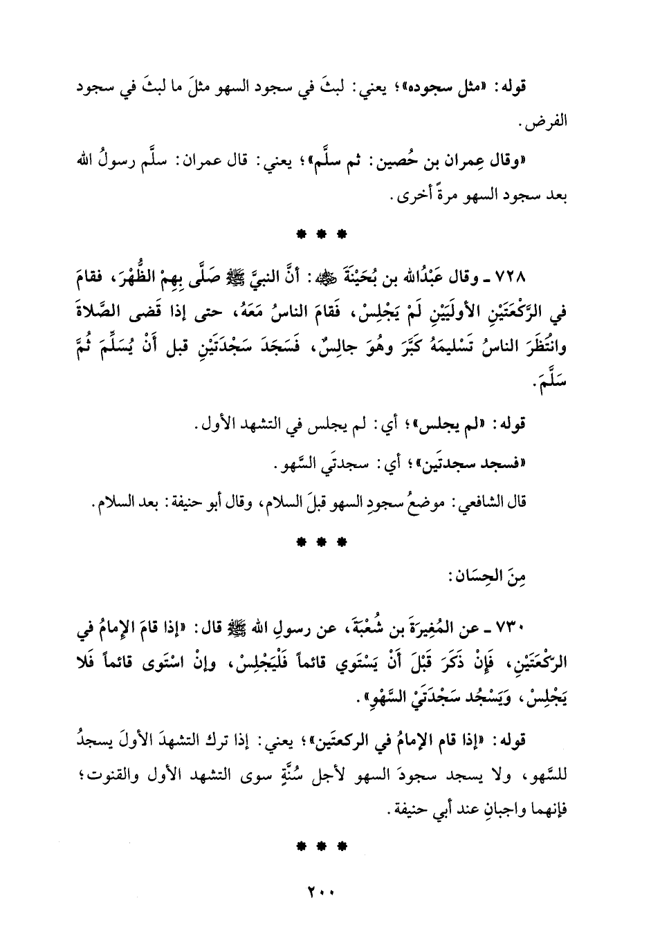 730 - عن المُغِيرَةَ بن شُعْبَةَ، عن رسولِ الله - صلى الله عليه وسلم - قال: "إذا قامَ الإِمامُ في الرّكْعَتَيْنِ، فَإِنْ ذَكَرَ قَبْلَ أَنْ يَسْتَوي قائمًا فَلْيَجْلِسْ، وإنْ اسْتَوى قائمًا فَلا يَجْلِسْ، وَيَسْجُد سَجْدَتَيْ السَّهْوِ".