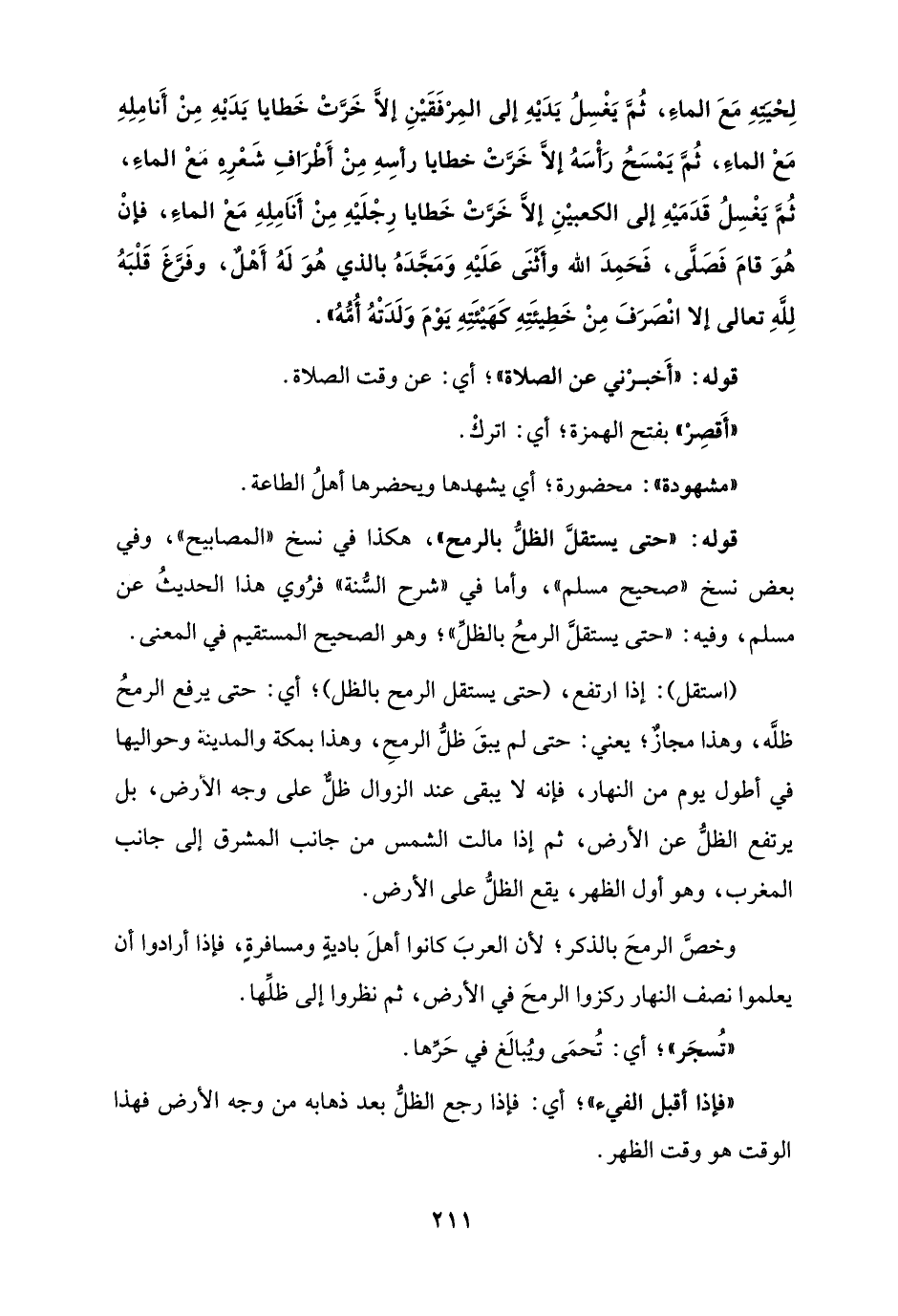 قوله: "حتى يستقلَّ الظلُّ بالرمح"، هكذا في نسخ "المصابيح"، وفي بعض نسخ "صحيح مسلم"، وأما في "شرح السُّنة" فرُوي هذا الحديثُ عن مسلم، وفيه: "حتى يستقلَّ الرمحُ بالظلِّ"؛ وهو الصحيح المستقيم في المعنى.