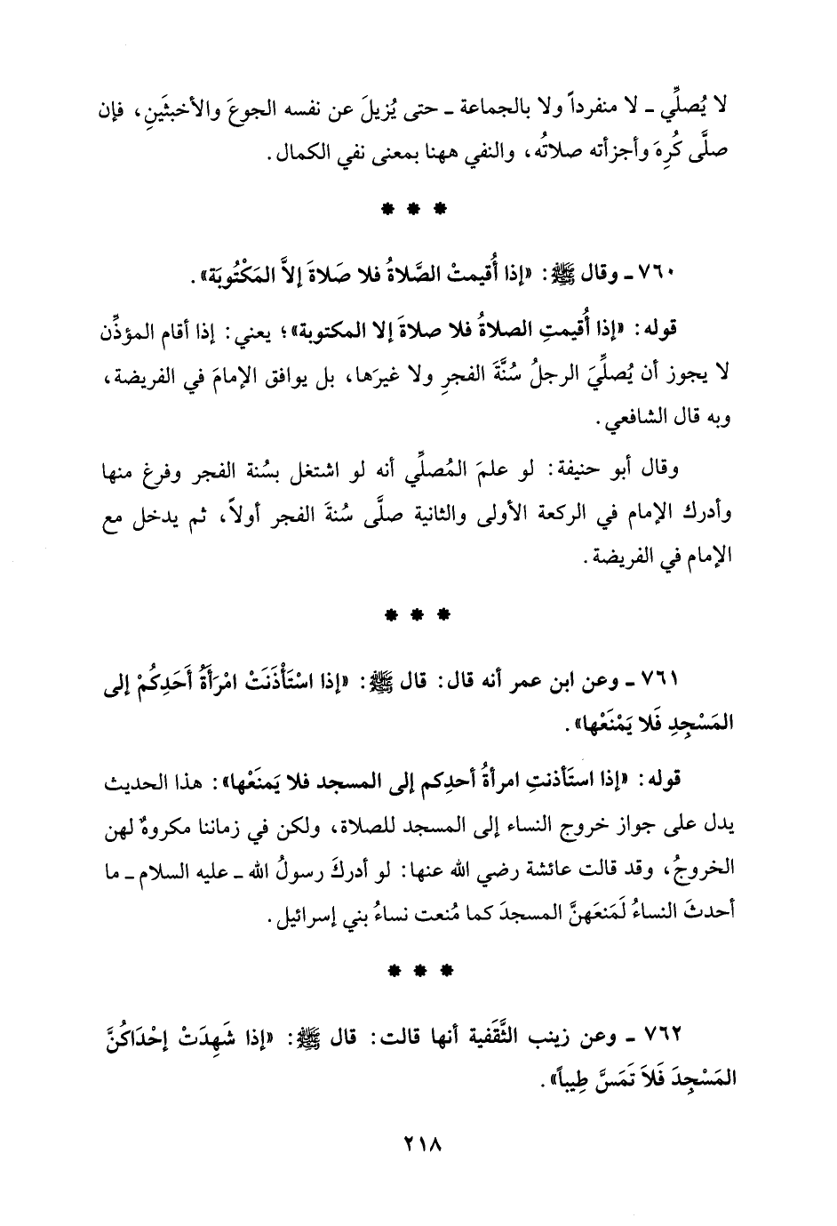 761 - وعن ابن عمر أنه قال: قال - صلى الله عليه وسلم -: "إذا اسْتَأْذَنَتْ امْرَأَةُ أَحَدِكُمْ إلى المَسْجدِ فَلا يَمْنَعْها".