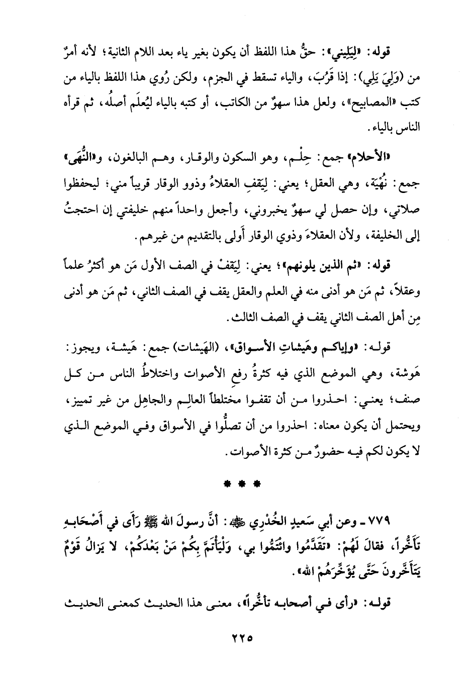779 - وعن أبي سَعيدٍ الخُدْرِي - رضي الله عنه -: أنَّ رسولَ الله - صلى الله عليه وسلم - رَأَى في أَصْحَابهِ تأَخُّرًا، فقالَ لَهُمْ: "تَقَدَّمُوا وائْتَمُّوا بي، وَلْيَأْتَمَّ بِكُمْ مَنْ بَعْدَكُمْ، لا يَزالُ قَوْمٌ يَتَأَخَّرونَ حَتَّى يُؤَخِّرَهُمْ الله".