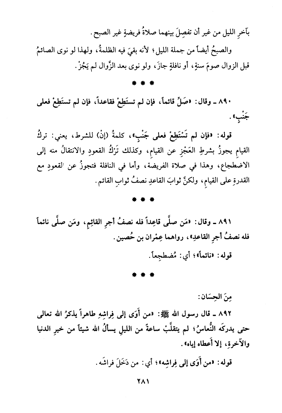 890 - وقال: "صَلِّ قائمًا، فإن لم تستَطِعْ فقاعدًا، فإن لم تستَطِعْ فعلى جَنْبٍ".