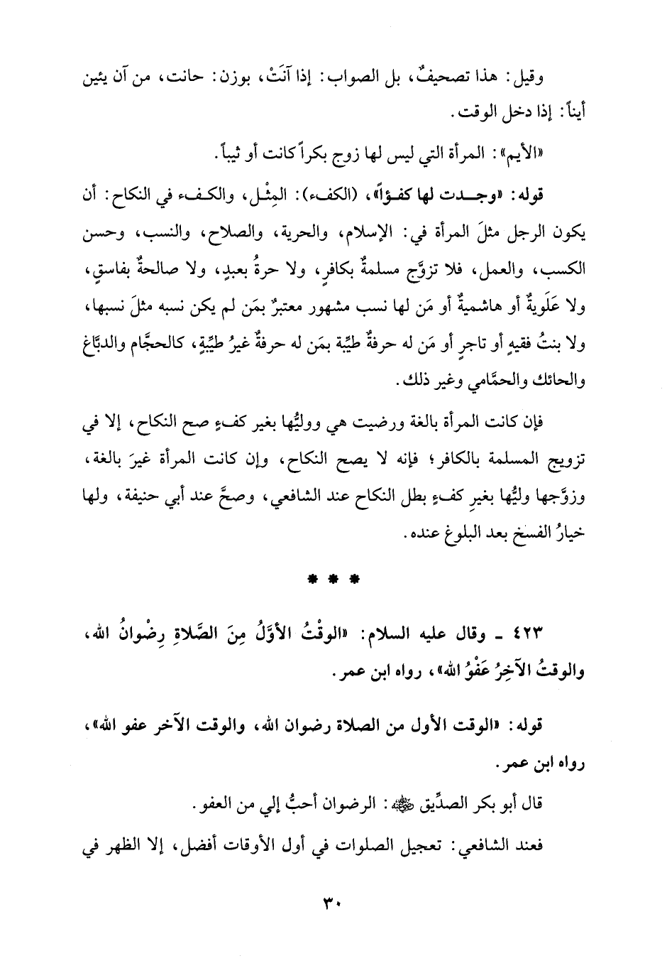 423 - وقال عليه السلام: "الوقْتُ الأوَّلُ مِنَ الصَّلاةِ رِضْوانُ الله، والوقتُ الآخِرُ عَفْوُ الله"، رواه ابن عمر.
