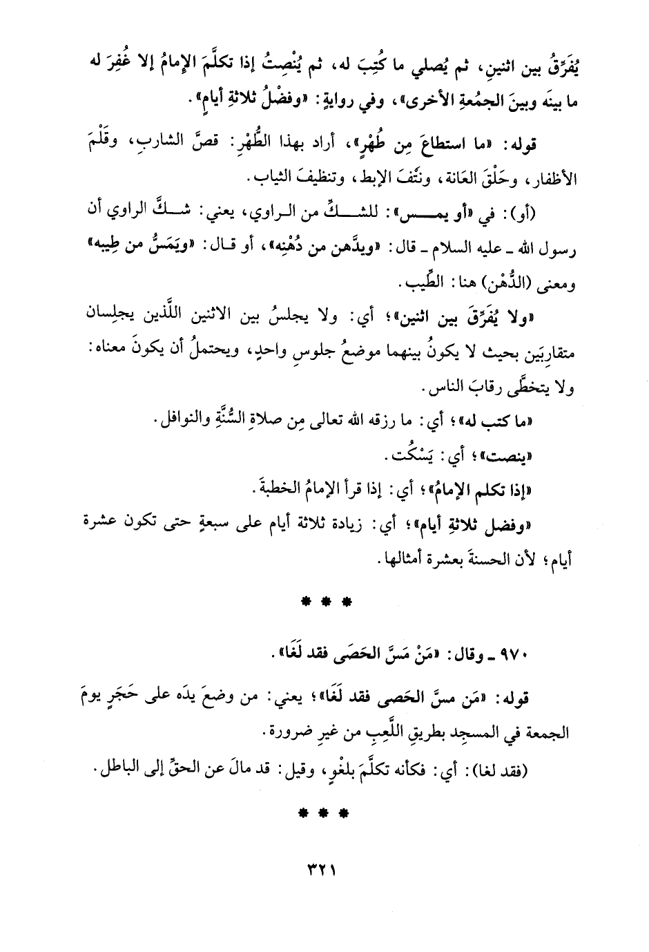 970 - وقال: "مَنْ مَسَّ الحَصَى فقد لَغَا".