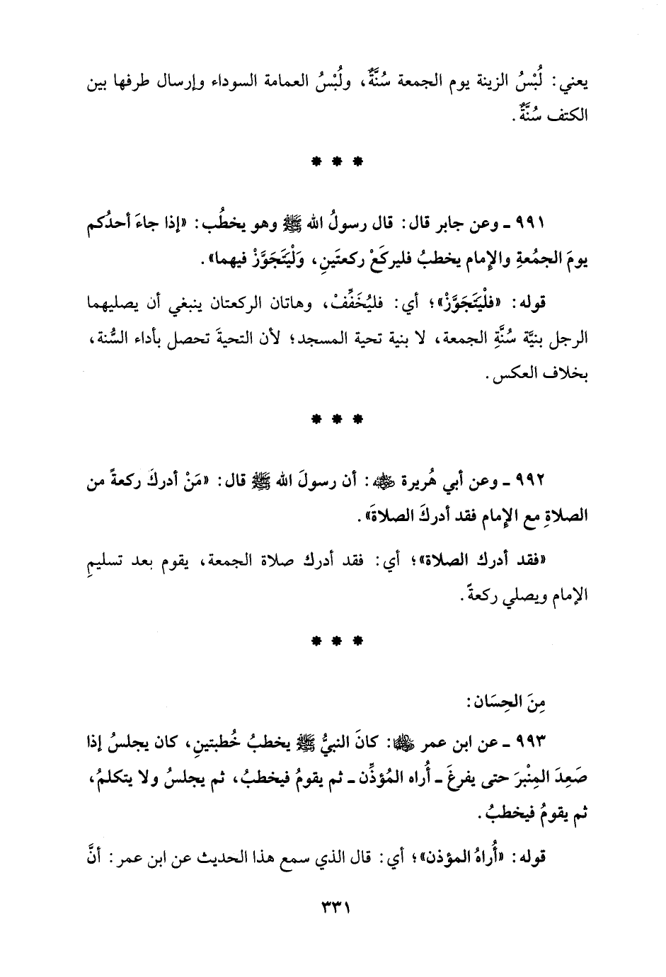 991 - وعن جابر قال: قال رسولُ الله - صلى الله عليه وسلم - وهو يخطُب: "إذا جاءَ أحدُكم يومَ الجمُعةِ والإمام يخطبُ فليركَعْ ركعتَينِ، وَلْيَتَجَوَّزْ فيهما".