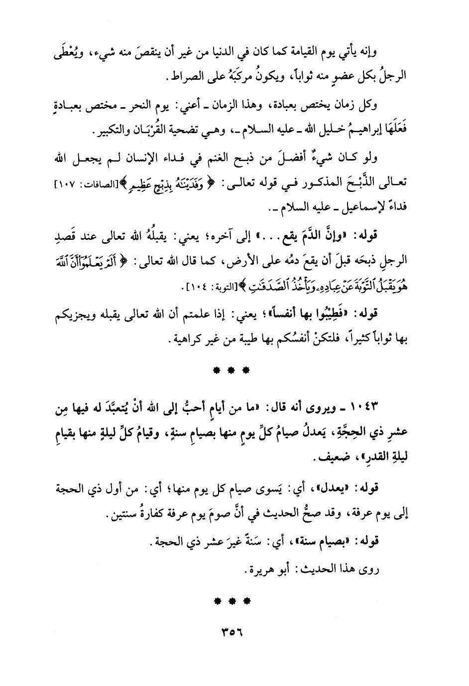 1043 - ويروى أنه قال: "ما من أيامٍ أحبُّ إلى الله أنْ يُتعبَّدَ له فيها مِن عشرِ ذي الحِجَّةِ، يَعدلُ صيامُ كلِّ يومٍ منها بصيامِ سنةٍ، وقيامُ كلِّ ليلةٍ منها بقيامِ ليلةِ القدرِ"، ضعيف.